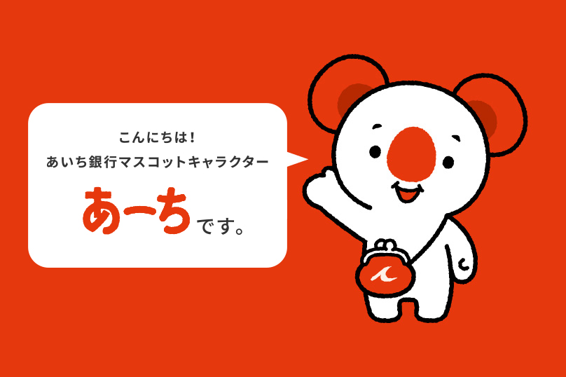 あーち(マスコットキャラクター)いつの間にかあいち銀行に住み着いてしまったコアラの子。お客さまの夢への懸け橋となるように、「あーち」と名付けられました。