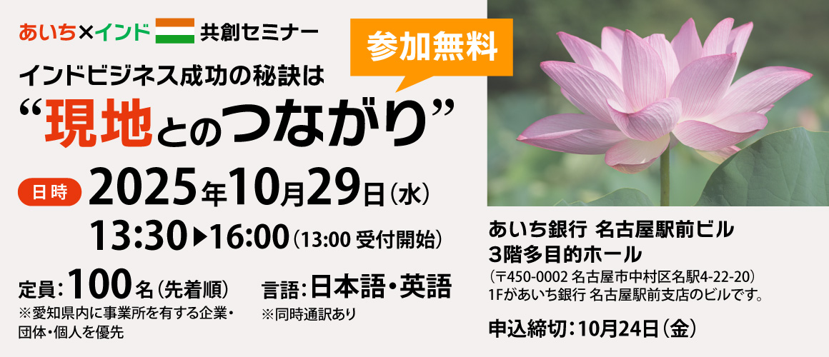 - あいち×インド 共創セミナー「インドビジネス成功の秘訣は"現地とのつながり"」