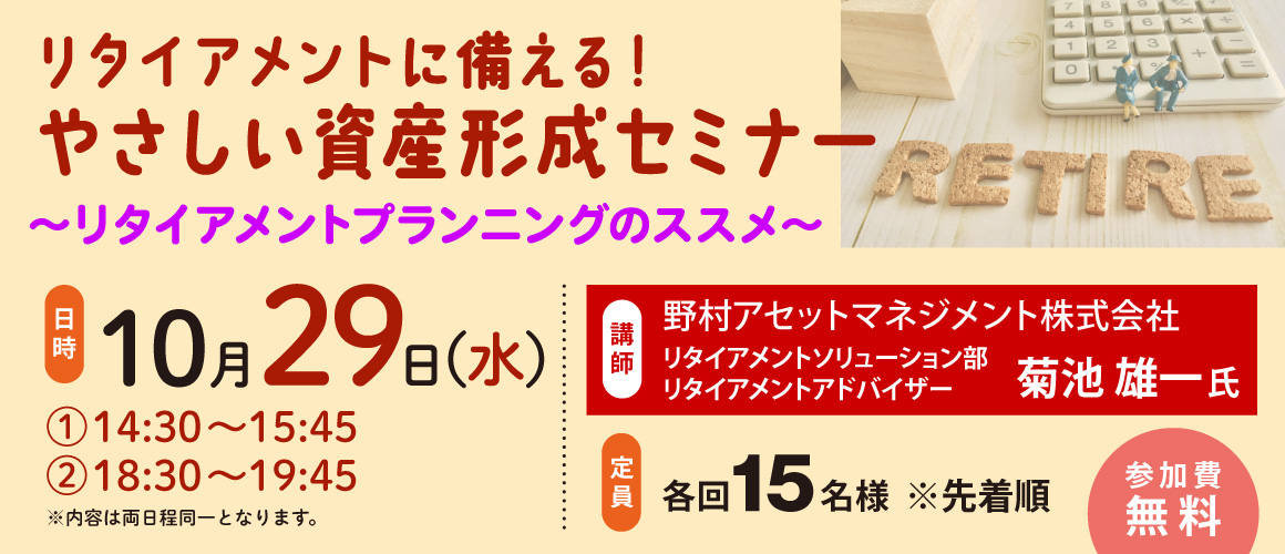 セミナーでは、投資信託運用会社の第一線で活躍してきたリタイアメントアドバイザーより、退職までに貯めてきた資産の活用にまつわる「お金のコーディネート術」を解説します。