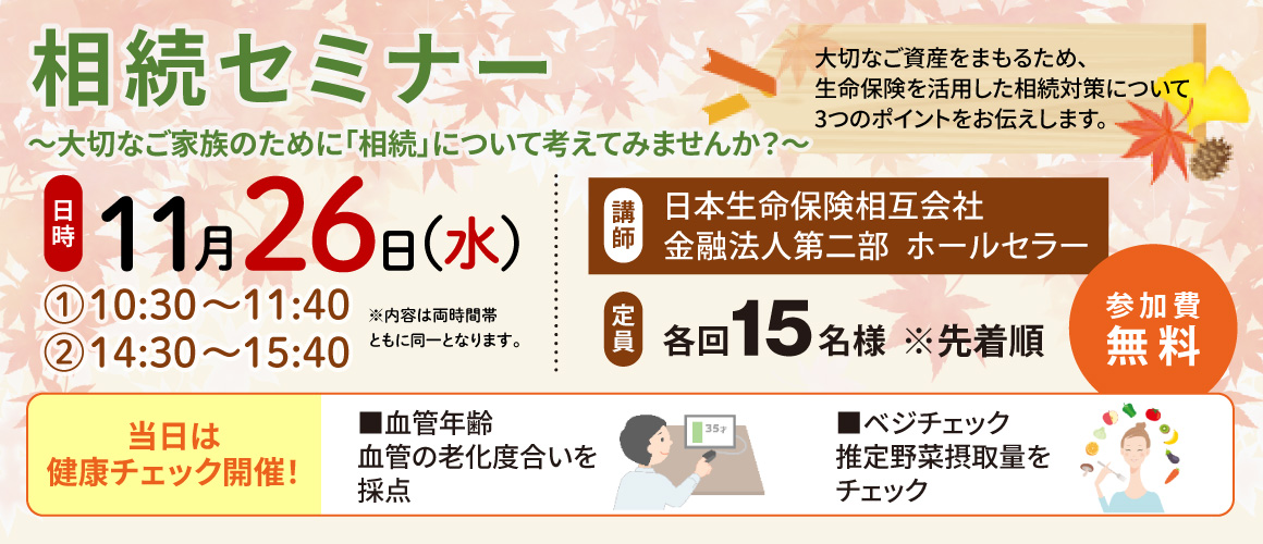 - 相続セミナー~大切なご家族のために「相続」について考えてみませんか?~