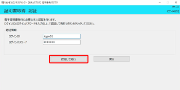 ログインID、ログインパスワードを入力し、[認証して発行]ボタンをクリックしてください。