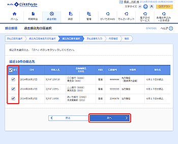 振込先を選択し、[次へ]ボタンをクリックしてください。