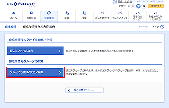[振込(請求・納付)先のグループ管理/ファイル登録]ボタンをクリックしてください。