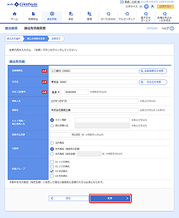 修正する内容を入力のうえ、[変更]ボタンをクリックしてください。