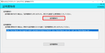 証明書発行アプリをインストールされている場合は、[証明書発行アプリの起動]ボタンをクリックのうえ、電子証明書の更新を行ってください。