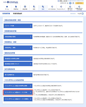 [トランザクション認証のトークン失効]ボタンをクリックしてください。