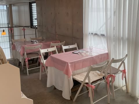 白を基調としたかわいいインテリアに、リボンアイテムがそろうかわいらしいカフェで、どこを切り取ってもSNS映え間違いなし!ワンちゃんと一緒に来店できるのも嬉しいポイントです。リボンをトッピングしたいちごティラミスやストロベリーミルクなど、写真映え抜群のスイーツとドリンクが豊富にそろっています。