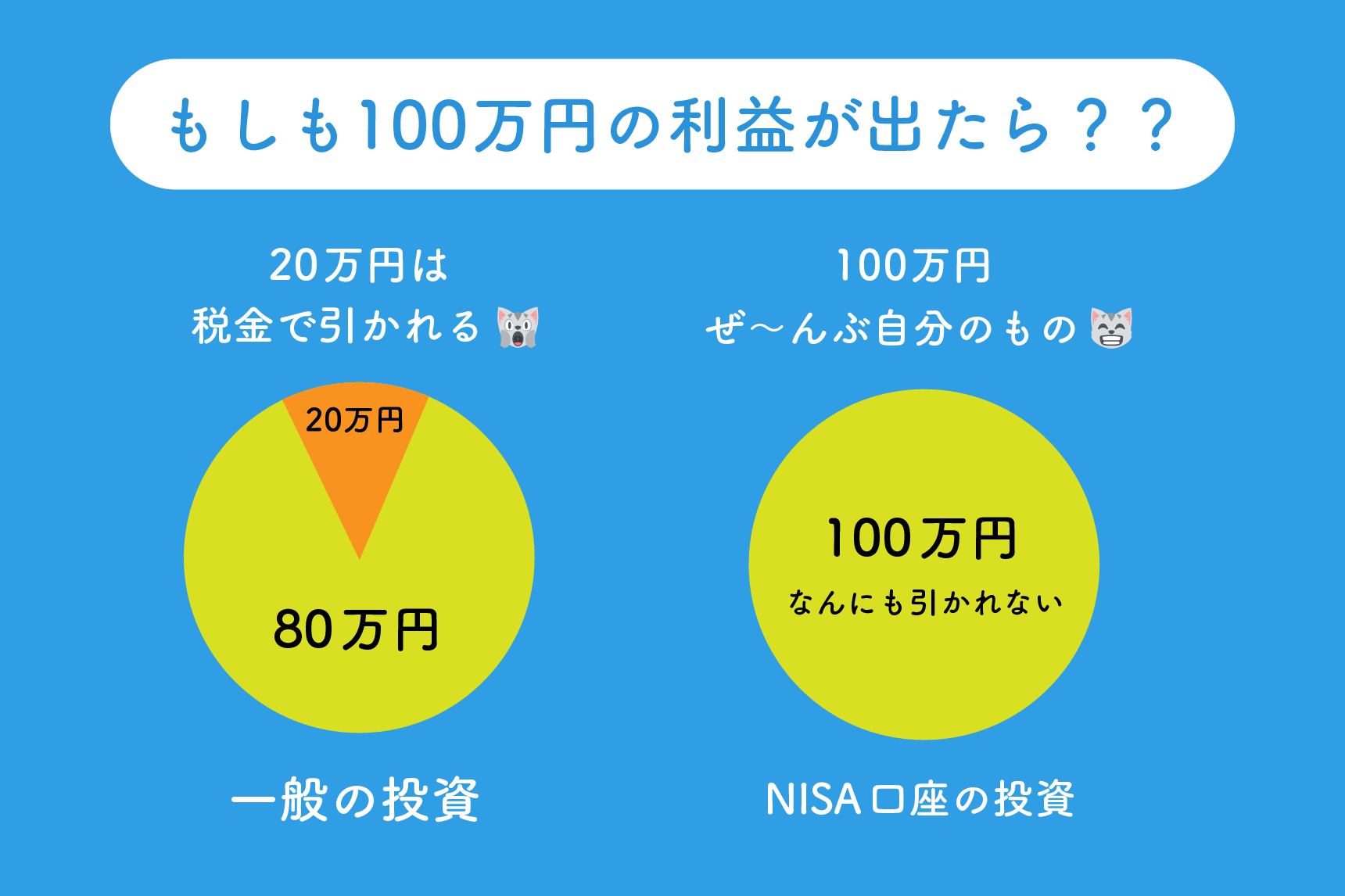 本来、投資で増えたお金を口座から引き出すときには、増えたお金に対して20.315%の税金が引かれます。しかし、NISAでは増えたお金に対して税金がかかりません。そのため、増えたお金も全額受け取れるのです。