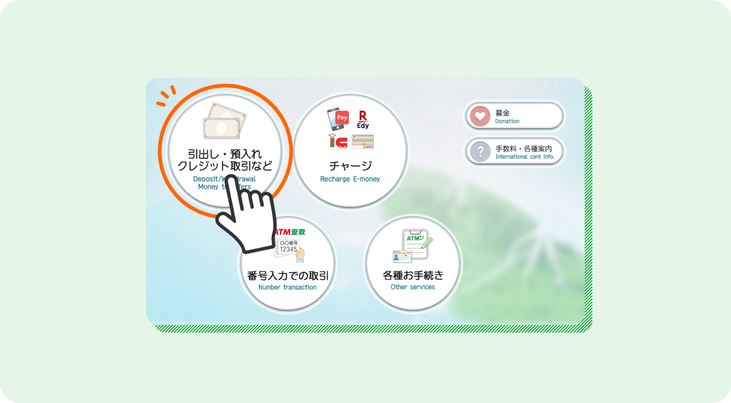 キャッシュカードのかわりに「あいぎんアプリ」があれば、お近くのセブン銀行ATMで入出金が可能なサービスです。
