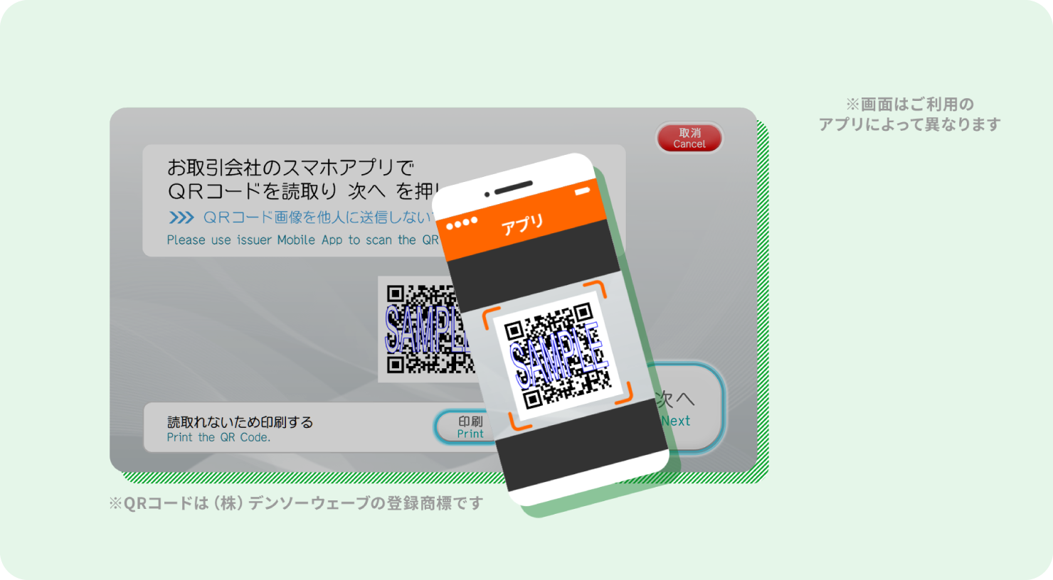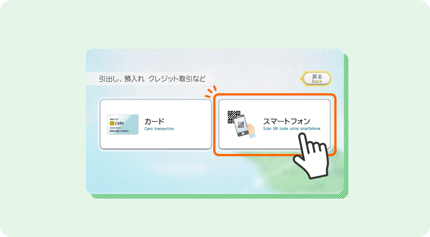 ATM画面に表示されたQRコードをあいぎんアプリで読取り、ATM画面の「次へ」をタッチ